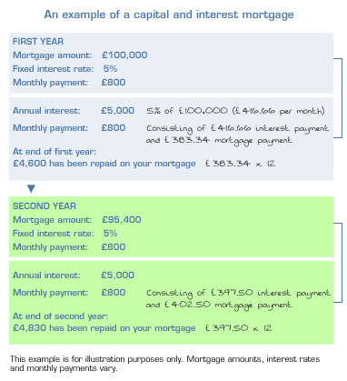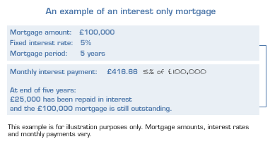 Capital and Interest Otherwise known as Repayment Mortgages. The loan is gradually repaid over the term with a high proportion of each monthly payment in the early years consisting of interest. The lender will ordinarily require you to take additional Life Assurance to repay the loan in the event of your death. This type of mortgage has the advantage of giving the borrower the absolute certainty of having the loan cleared at the end of the term, provided they are able to maintain their monthly repayments, but has the disadvantage that if the borrower chooses to move and increase their borrowing in the early years, they are more likely to have to extend the term of the loan. Interest Only Interest is payable on the whole amount of the loan. The payment of the capital is deferred until the end of the mortgage term where it must be paid in full. How you choose to repay the loan at the end of the term is normally up to you. The most common method in recent years has been the endowment, however there are a number of other options available.